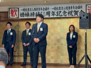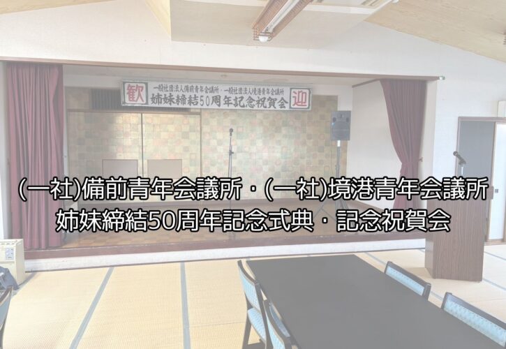 10月18日(土)に米子市皆生の三井別館にて(一社)備前青年会議所・(一社)境港青年会議所姉妹締結50周年記念式典・記念祝賀会が開催されました。