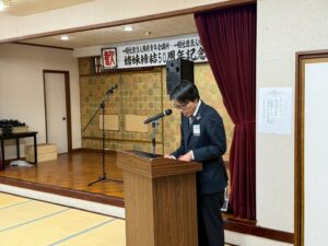 ・記念式典では両青年会議所の理事長、境港JCOB会会長、備前JCシニアクラブ会長が挨拶をされたあと、姉妹締結の経緯について石黒豊先輩、渡辺将利先輩、そして備前市長の長﨑信行先輩より当時の貴重なお話を伺いました。